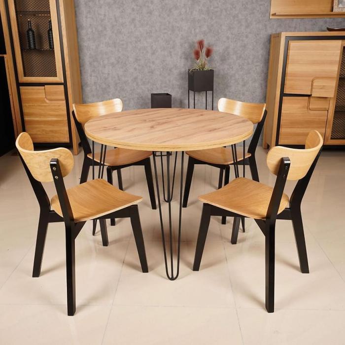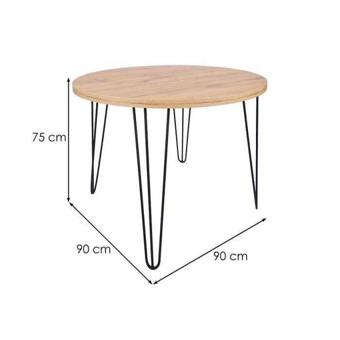 Stół Tobi 90 Dąb Wotan to połączenie prostoty i nowoczesnego designu, które doskonale odnajdzie się w każdej aranżacji – od skandynawskiej po industrialną. Okrągły blat w ciepłym odcieniu dębu wotan dodaje wnętrzu przytulności i elegancji, tworząc idealne miejsce do codziennych posiłków lub spotkań przy kawie.