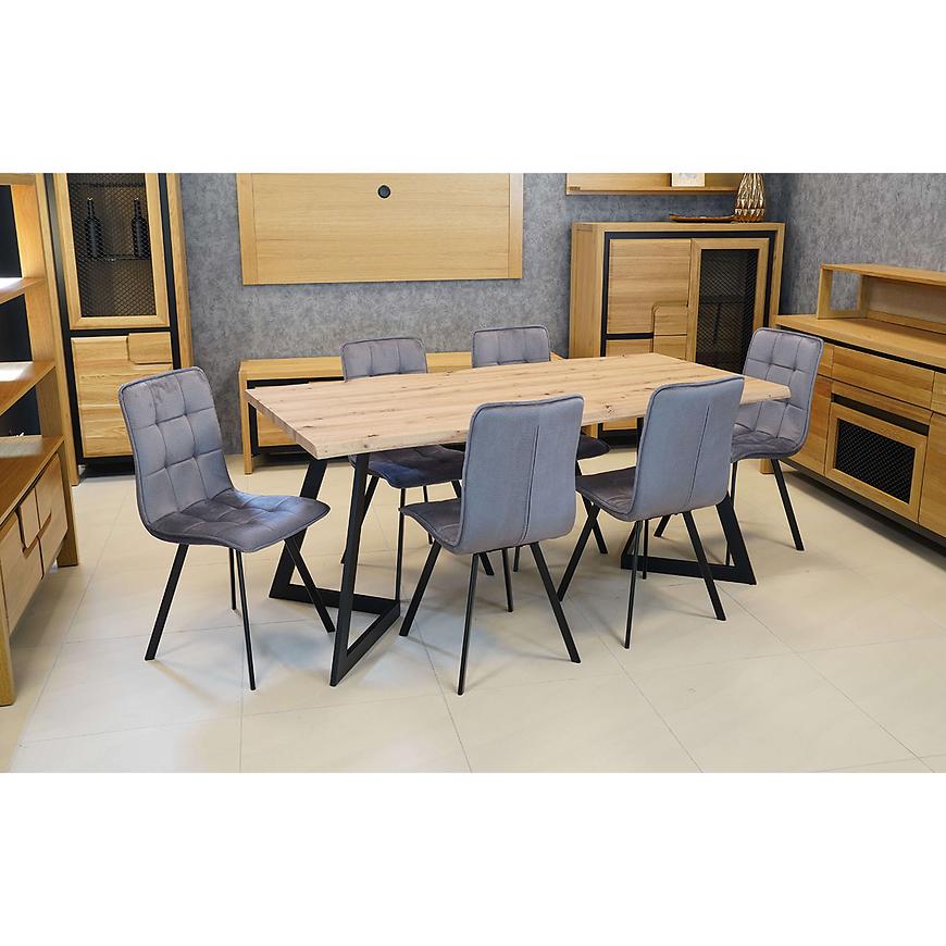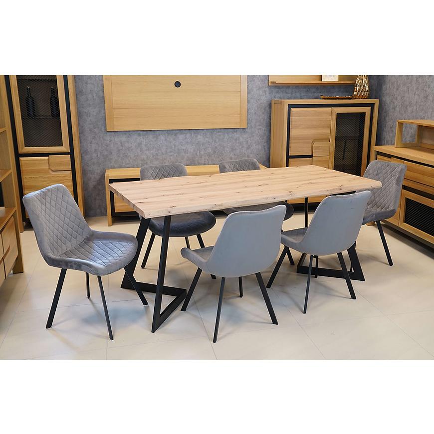 Blat stołu wykonany jest z płyty wiórowej laminowanej, co gwarantuje jego odporność na uszkodzenia i łatwość w utrzymaniu czystości. Blat ma prostokątny kształt, co sprawia, że stół jest idealnym miejscem do wspólnych spotkań, rodzinnych posiłków czy pracy przy biurku. Wykończenie blatu jest matowe, co nadaje mu elegancki, a jednocześnie surowy wygląd, charakterystyczny dla stylu loftowego.