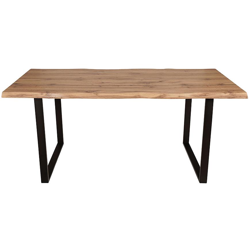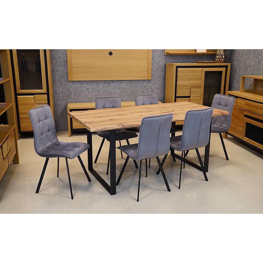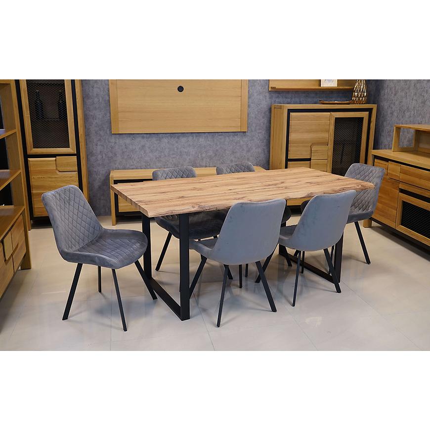 Blat stołu wykonany jest z płyty wiórowej laminowanej, co gwarantuje jego odporność na uszkodzenia i łatwość w utrzymaniu czystości. Blat ma prostokątny kształt, co sprawia, że stół jest idealnym miejscem do wspólnych spotkań, rodzinnych posiłków czy pracy przy biurku. Wykończenie blatu jest matowe, co nadaje mu elegancki, a jednocześnie surowy wygląd, charakterystyczny dla stylu loftowego.