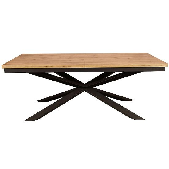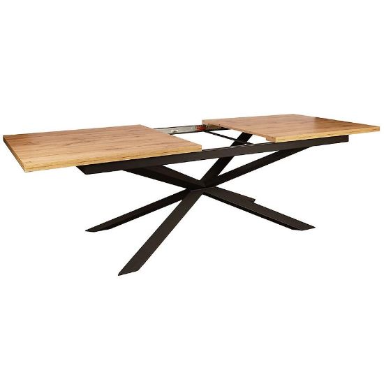 Stół St-33 250x100+2x50 dąb wotan/czarny to wyjątkowy mebel, który wprowadzi do Twojego wnętrza niepowtarzalny klimat. Jego wykończenie nadaje mu elegancki, rustykalny charakter, który doskonale komponuje się z nowoczesnymi aranżacjami wnętrz. Dąb wotan to drewno o bogatej strukturze, które zachwyca naturalnym pięknem i ciepłym odcieniem.