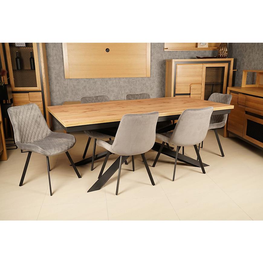 Blat stołu wykonany jest z płyty wiórowej laminowanej, co gwarantuje jego odporność na uszkodzenia i łatwość w utrzymaniu czystości. Blat ma prostokątny kształt, co sprawia, że stół jest idealnym miejscem do wspólnych spotkań, rodzinnych posiłków czy pracy przy biurku. Wykończenie blatu jest matowe, co nadaje mu elegancki, a jednocześnie surowy wygląd, charakterystyczny dla stylu loftowego.