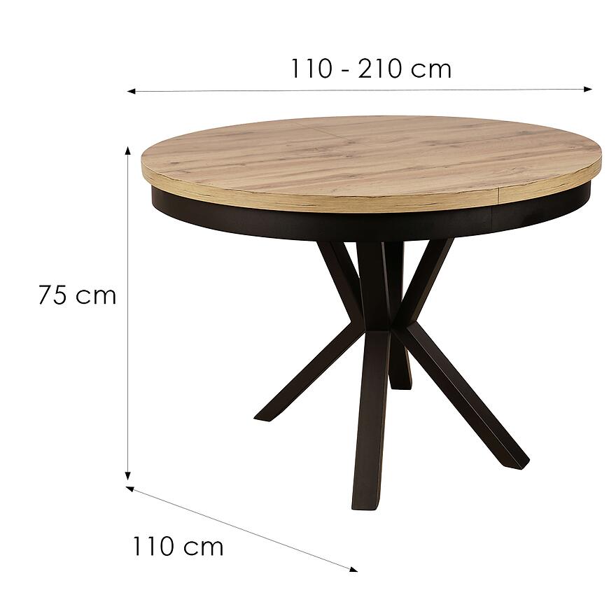 Dzięki długości 110 cm i dwóm wkładkom po 50 cm każda, stół można łatwo powiększyć, tworząc dodatkową przestrzeń dla gości. Wysokość 75 cm jest standardowa, więc pasuje do większości krzeseł. Rozsuwany mechanizm umożliwia szybkie dostosowanie stołu do liczby osób, zachowując przy tym stabilność i estetykę całej konstrukcji.