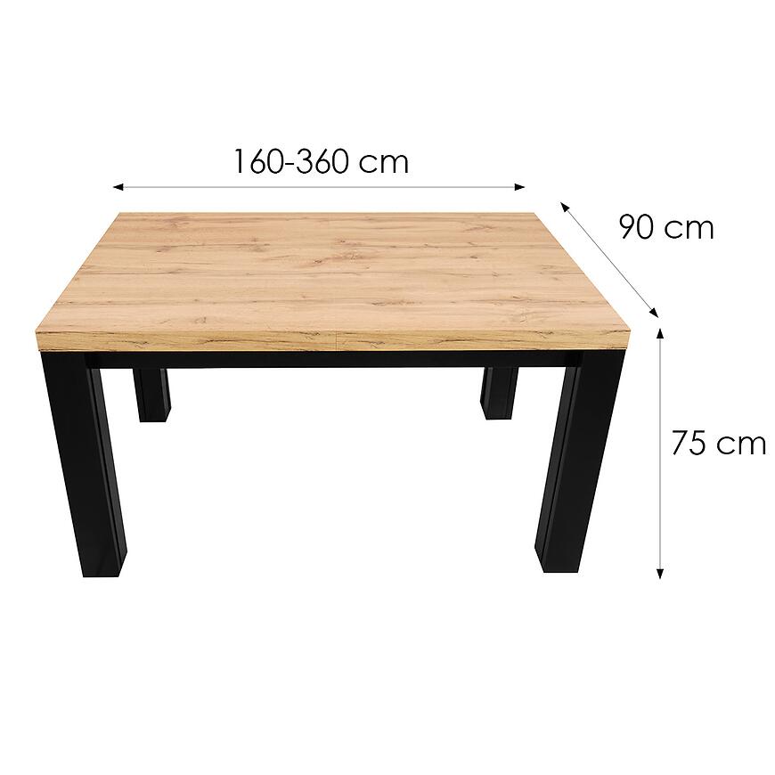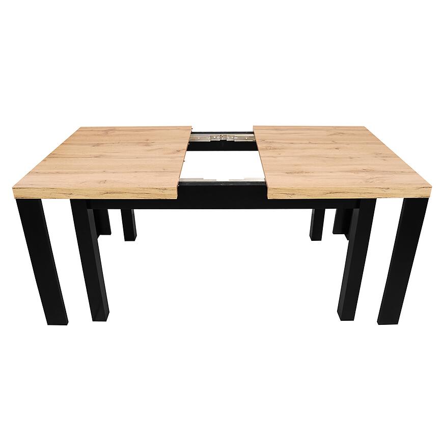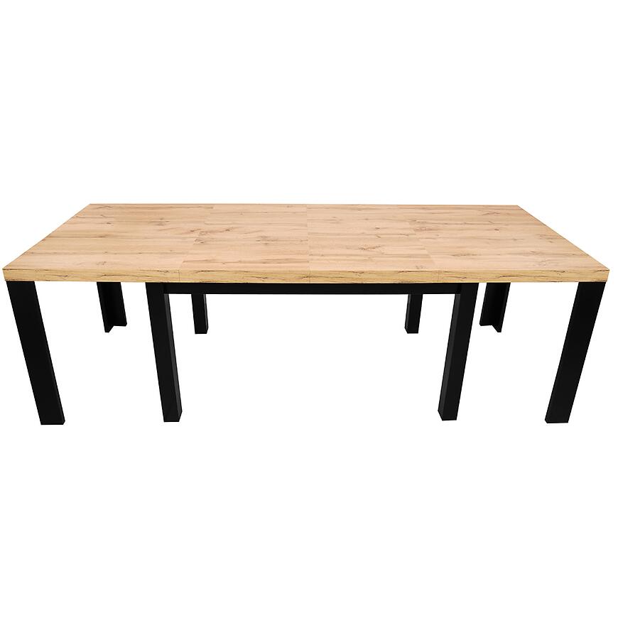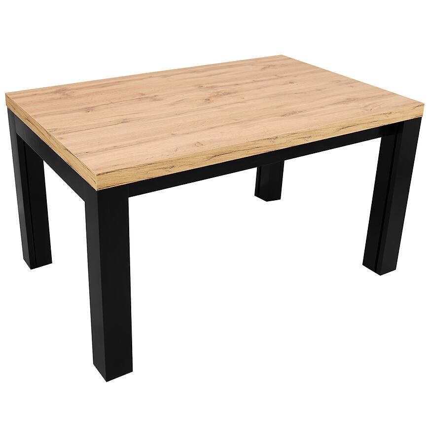 Stół St-63 to mebel łączący funkcjonalność z nowoczesnym designem, który świetnie sprawdzi się zarówno w jadalni, jak i w salonie. Dzięki rozkładanemu blatowi stół pozwala na wygodne przyjęcie większej liczby gości, a jego solidna konstrukcja gwarantuje trwałość przez wiele lat. Stół St-63 charakteryzuje się prostokątnym blatem o matowym wykończeniu w jasnym drewnopodobnym odcieniu, który w połączeniu z eleganckim stelażem w kolorze wotan/czarnym tworzy harmonijną całość pasującą do nowoczesnych wnętrz.