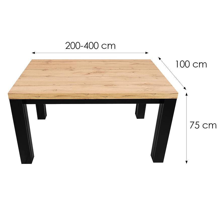 Stół St-63 ma wysokość 75 cm, szerokość 100 cm, długość przed rozłożeniem 200 cm i po rozłożeniu aż 400 cm. Takie wymiary sprawiają, że jest idealnym rozwiązaniem zarówno do mniejszych jadalni, jak i przestronnych salonów. Produkt wymaga samodzielnego złożenia, jednak intuicyjna konstrukcja pozwala szybko przygotować stół do użytku.