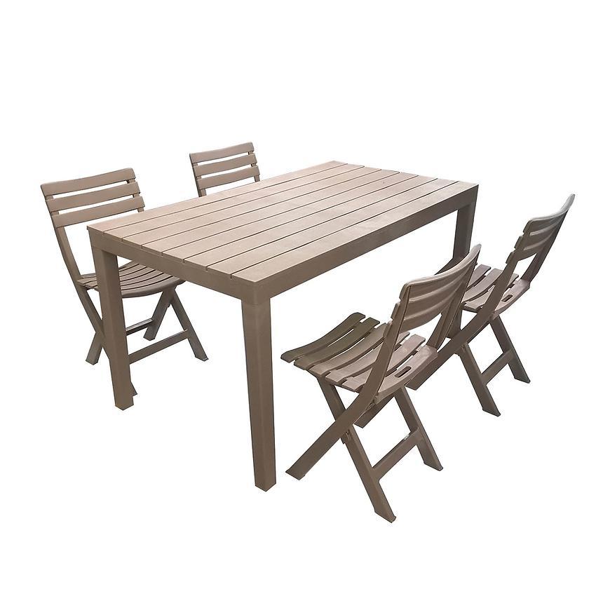Stół obiadowy Sumatra to stół, który idealnie wpasuje się w design ogrodu, balkonu czy tarasu. Wykorzystany materiał to wysokiej jakości plastik, co sprawia, że jest solidny i wytrzymały. Odporny na promieniowanie UV i niekorzystne warunki atmosferyczne. Dodatkowy efekt wizualny nadaje imitacja deski na blacie w stylu polywood oraz uniwersalne kolory. Stół posiada wyjmowane nogi.