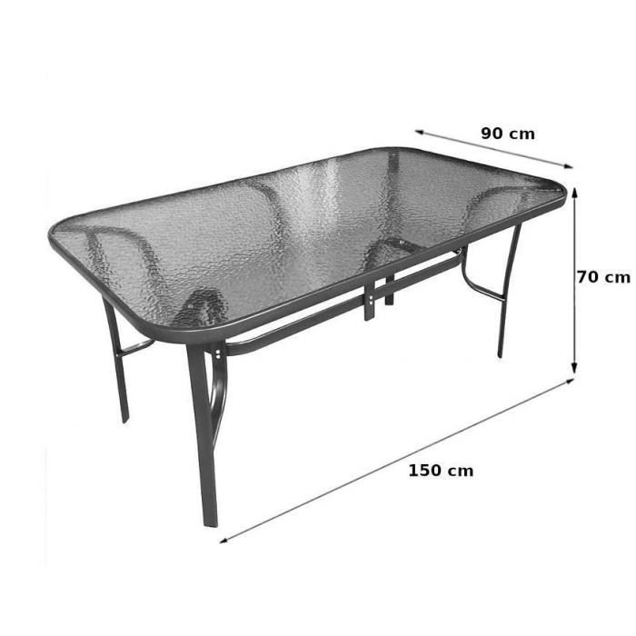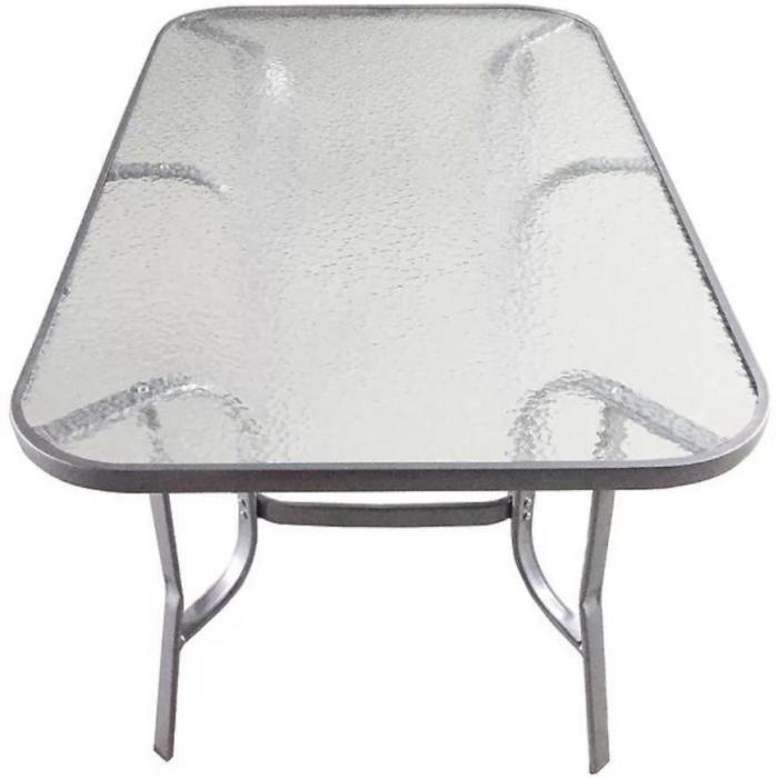 Klasyczny stół ogrodowy ze szklanym blatem będzie pasował niemal do każdego rodzaju krzeseł. Idealnie wpasuje się w kompozycje każdego balkonu, tarasu czy ogrodu. Stół posiada antypoślizgowe nóżki, które zapewniają stabilność i bezpieczne użytkowanie.