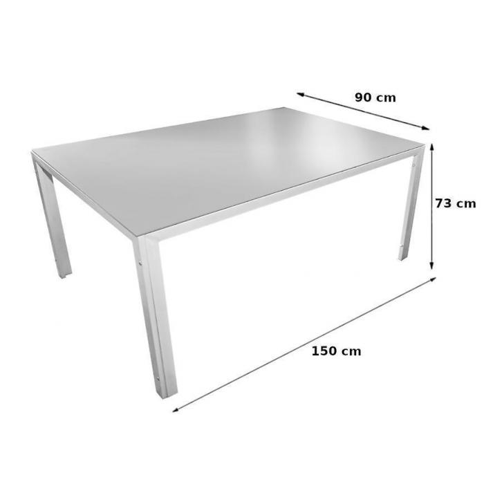 Elegancki stół ze szklanym blatem będzie pasował na niejeden taras lub ogród. Rama metalowa malowana proszkowo oraz blat malowany na matowy kolor dają ciekawy design. Blat stołu wykonany został ze szkła hartowanego, który jest wytrzymalszy na uszkodzenia.