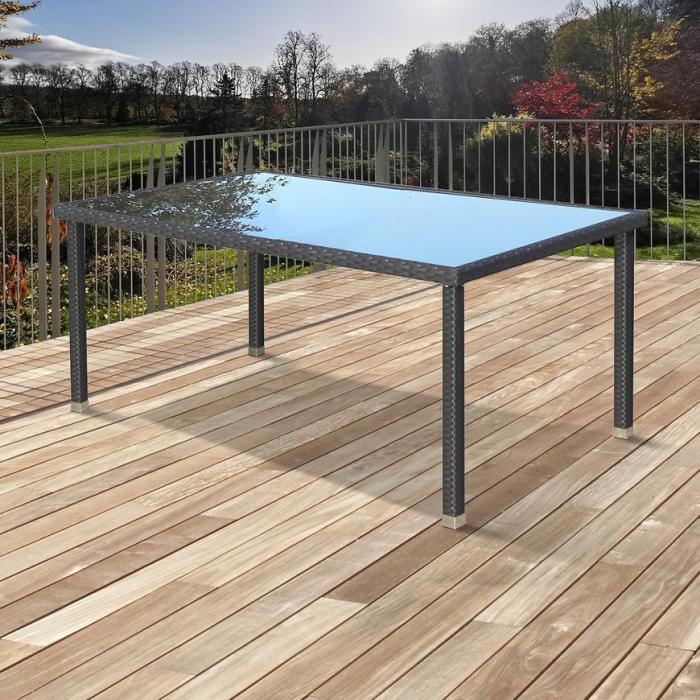 Technorattanowy stół idealnie wpasuje się w kompozycje każdego balkonu, tarasu czy ogrodu. Jego nowoczesny design przypadnie do gustu każdemu. Stół posiada przyssawki, co zapewnia, że blat jest stabilny i nie przesuwa się. Konstrukcja to stal malowana proszkowo, a nogi mają możliwość niewielkiej regulacji, aby umożliwić osadzenie mebla na nierównym terenie. Do stołu polecamy zakup krzeseł Haiti.