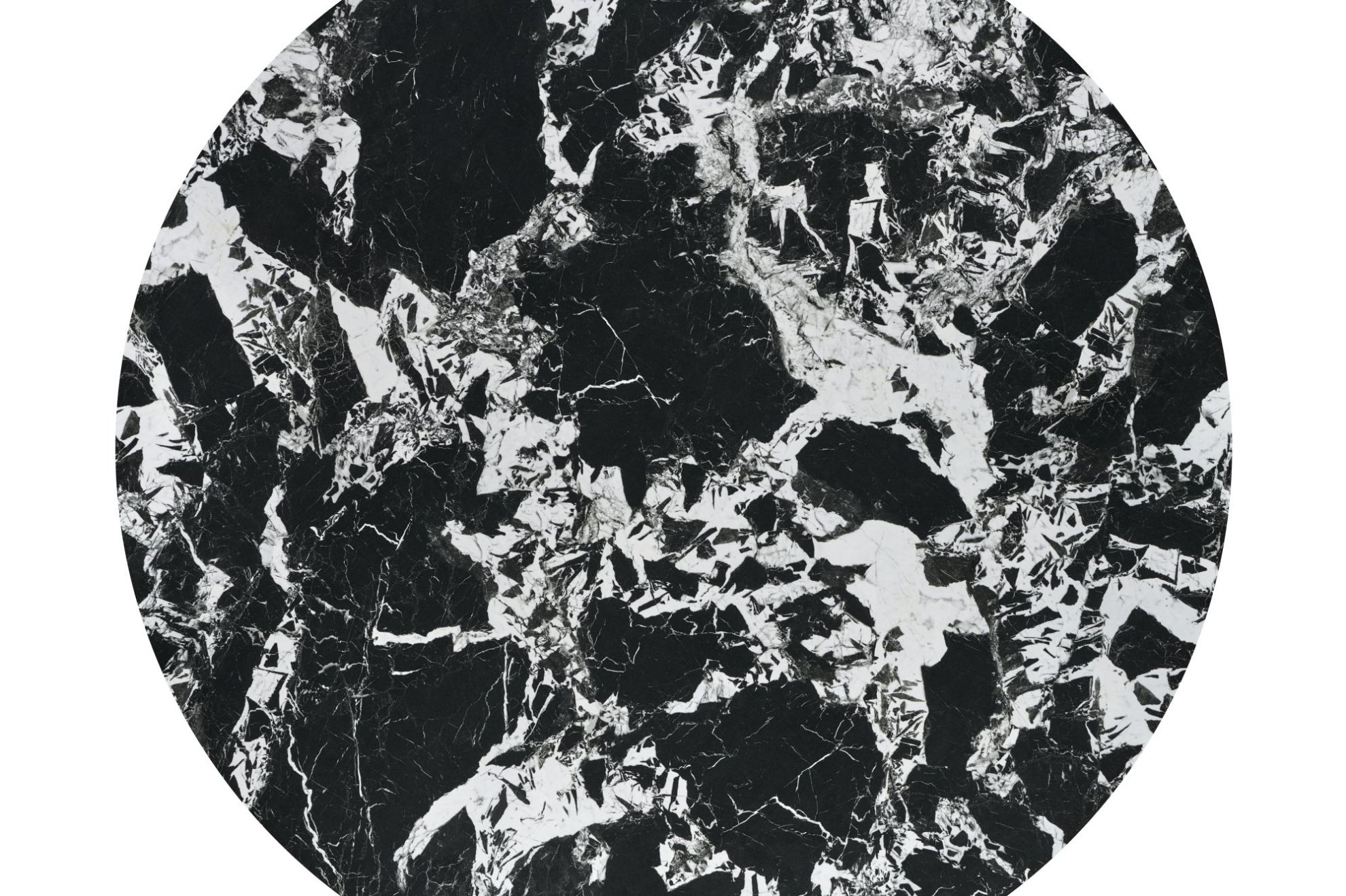 Blat stołu wykonany jest z wytrzymałego spieku, który imituje elegancki wygląd czarnego marmuru. To nie tylko praktyczne, ale również efektowne rozwiązanie, które nadaje pomieszczeniu wyjątkowy charakter. Solidna noga wykonana jest ze stali malowanej proszkowo w kolorze czarnym, co zapewnia stabilność i trwałość całej konstrukcji.