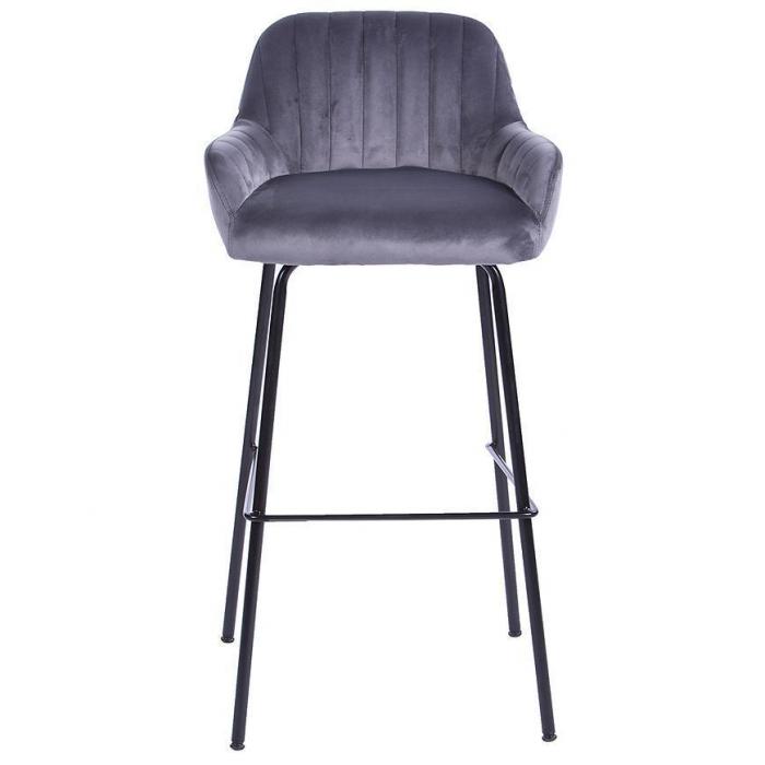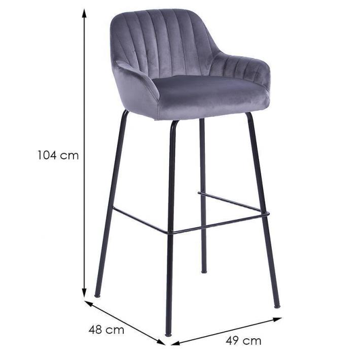 Hoker w kolorze szarym to doskonały wariant do salonu, jadalni, pokoju dziennego, gabinetu lub innego, dowolnego pomieszczenia. Głównymi zaletami krzesła są funkcjonalność, wygoda oraz ponadczasowy design. Nogi zostały wykonane z metalu, a całość pokryta tkaniną velvet.