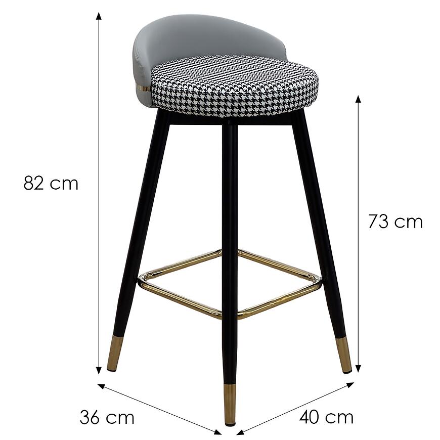 Stołek posiada wysokość siedziska 73 cm oraz całkowitą wysokość 82 cm, co zapewnia wygodną i ergonomiczną pozycję podczas siedzenia. Tapicerka z miękkiej tkaniny w szarym odcieniu jest nie tylko estetyczna, ale również praktyczna, łatwa w utrzymaniu czystości i odporna na codzienne użytkowanie.