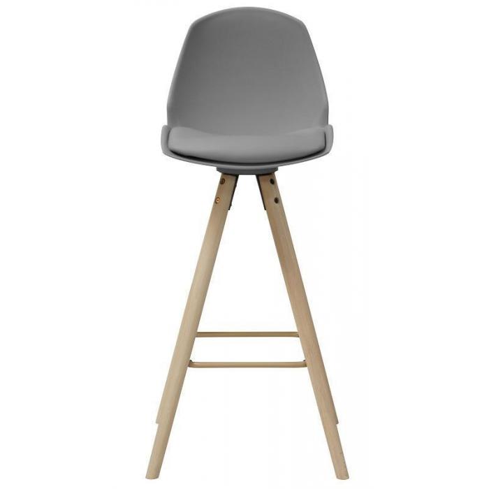Stołek posiada wygodne siedzisko oraz oparcie, które zapewniają komfort podczas użytkowania. Oparcie pozwala na swobodne ułożenie pleców, co stanowi wygodę podczas dłuższych spotkań z rodziną i przyjaciółmi. Siedzisko jest wygodne i tapicerowane skóropodobnym tworzywem. Jest to minimalistyczny rodzaj mebla, który dzięki uniwersalnej i stonowanej kolorystyce, będzie pasować do wielu aranżacji. Doskonale wpasuje się w każdą jadalnie i nie tylko - stołek świetnie sprawdzi się również w innych pomieszczeniach, jak na przykład kuchnia czy pokój dzienny. Nóżki wykonane są z drewna dębowego w kolorze naturalnym, co dodatkowo ozdobi całość mebla i nada odpowiedniego stylu. Stołek posiada cztery nóżki, które zagwarantują stabliność. Dodatkowo nogi są olejowane.