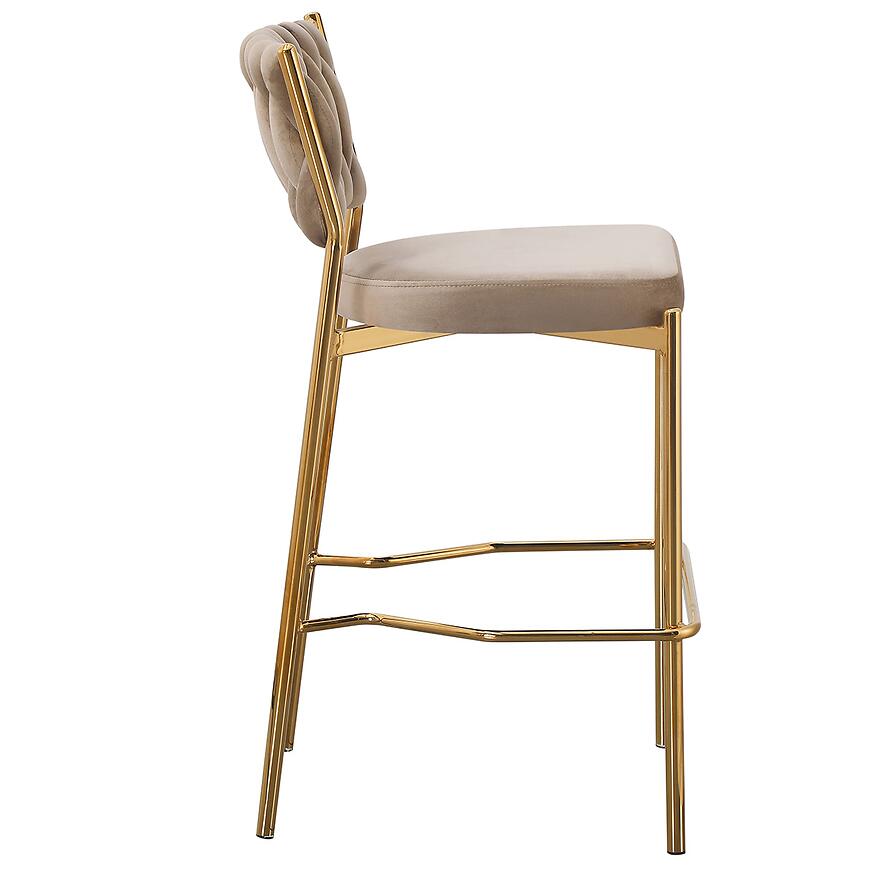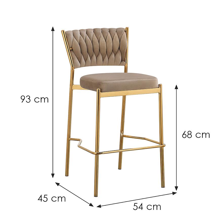 Stołek barowy Glamour 12515 beżowy/złoty to elegancki i nowoczesny mebel, łączący komfort i styl. Wykonany z wytrzymałego metalu oraz miękkiej tkaniny tapicerskiej, zapewnia trwałość i estetyczny wygląd. Beżowe siedzisko w połączeniu ze złotym stelażem dodaje luksusowego charakteru. Stołek ma wysokość całkowitą 93 cm, wysokość do siedziska 68 cm, długość 45 cm i szerokość 54 cm, przy wadze 5,4 kg. To praktyczny i stylowy model, który łączy solidność, wygodę i nowoczesny design, wymagający samodzielnego złożenia.