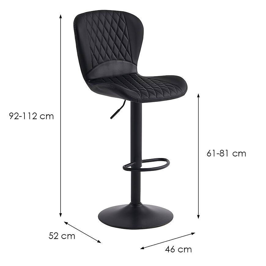 Wysokość siedziska można płynnie regulować w zakresie 61–81 cm, co pozwala dopasować hoker do różnych wysokości blatów kuchennych. Dzięki temu stołek Iris 12026 sprawdza się zarówno przy wyspach, jak i przy klasycznych podwyższonych blatach. Całkowita wysokość od 92 do 112 cm pozwala na wygodne użytkowanie niezależnie od wzrostu domowników.