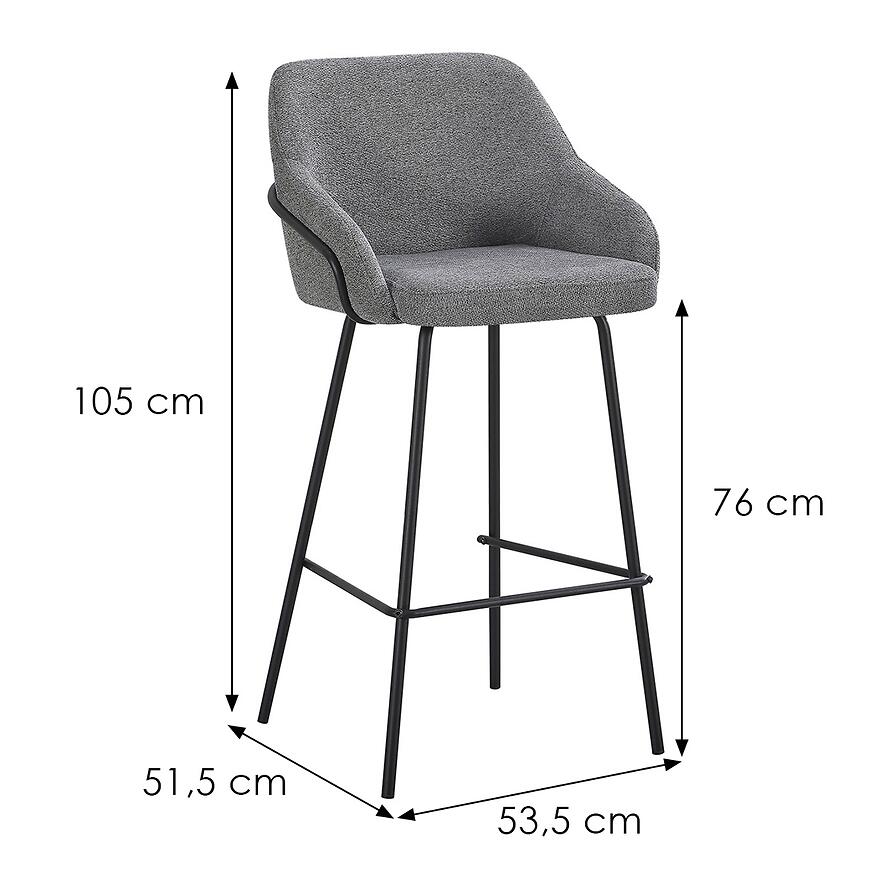 Stołek wyposażono w wygodne, tapicerowane siedzisko, które zapewnia komfort nawet podczas dłuższego siedzenia. Maksymalna wysokość stołka wynosi 105 cm, a wysokość do siedziska 76 cm, co pozwala dopasować stołek do różnych blatów barowych i wysp kuchennych.