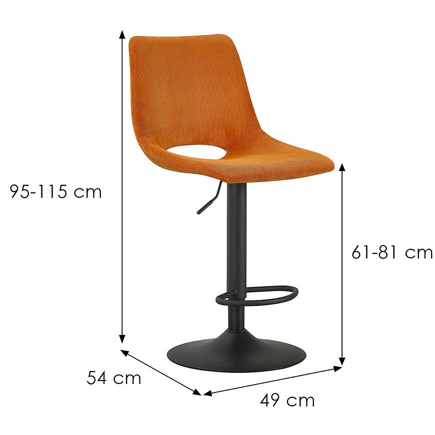 Stołek barowy Olen 12648 łączy komfort użytkowania z klasycznym designem. Pomarańczowe tapicerowane siedzisko w połączeniu z solidnym metalowym stelażem nadaje stołkowi elegancki i przyciągający wzrok charakter, który sprawdzi się w kuchniach, przy wyspach barowych oraz w domowych przestrzeniach jadalnianych.