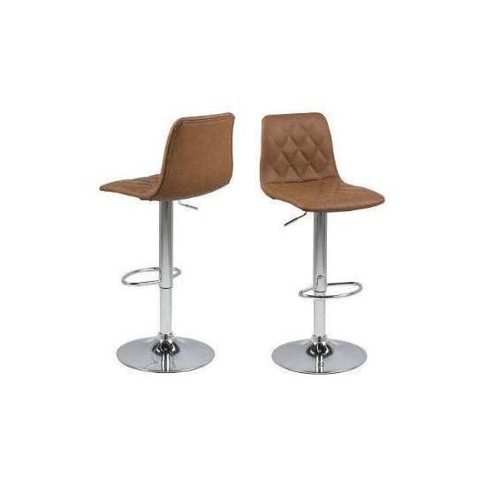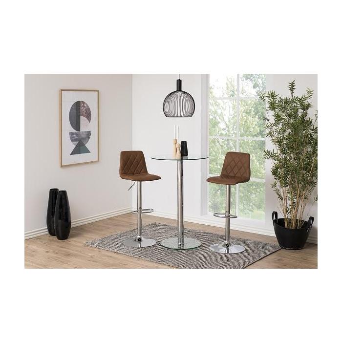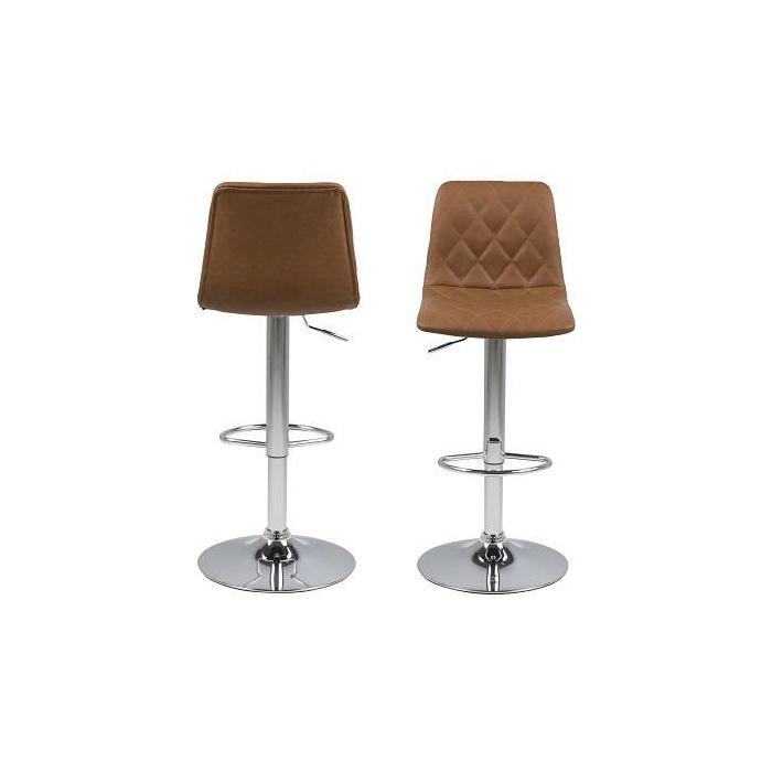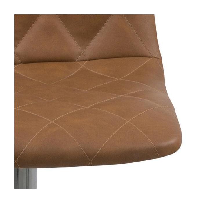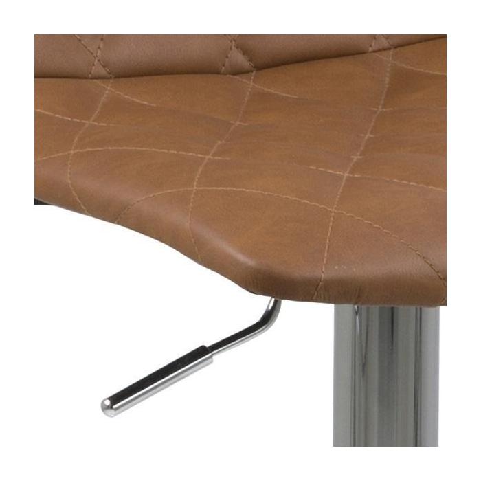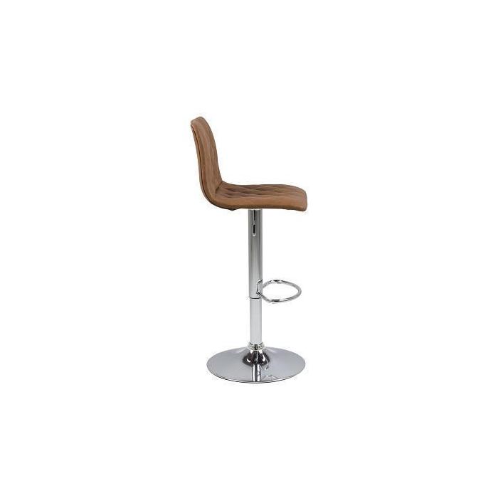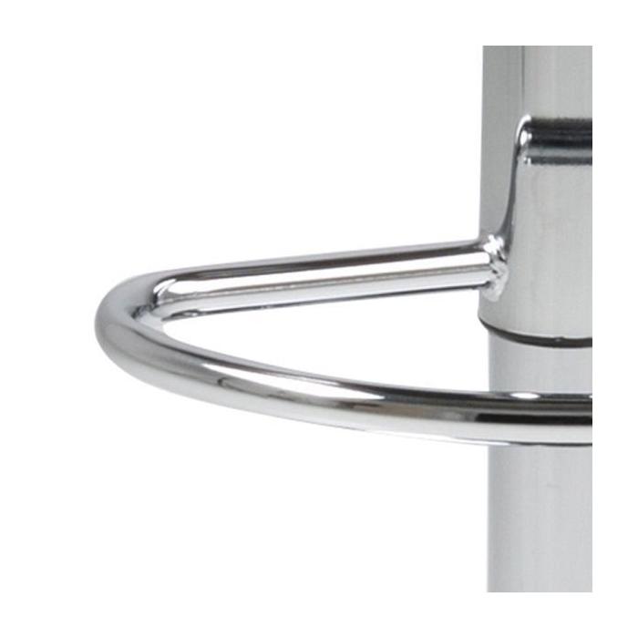 Stołek posiada wygodne siedzisko oraz oparcie, które zapewniają komfort podczas użytkowania. Oparcie jest profilowane, co pozwala na swobodne ułożenie pleców. Siedzisko tapicerowane jest skóropodobnym materiałem. Max. wysokość siedziska wynosi 82 cm, min. wysokosć siedziska - 61 cm, A wysokość oparcia - 31 cm. Jest to minimalistyczny rodzaj mebla, który dzięki uniwersalnej i stonowanej kolorystyce, będzie pasować do wielu aranżacji. Doskonale wpasuje się w każdą jadalnie i nie tylko - stołek świetnie sprawdzi się również w innych pomieszczeniach, jak na przykład kuchnia czy pokój dzienny. Noga wykonana jest z metalu w kolorze chromu, co dodatkowo ozdobi całość mebla i nada odpowiedniego stylu. Stołek posiada jedną nogę oraz podnóżek z okrągłą podstawą, które zagwarantują stabliność. Dodatkowo noga jest platerowana.