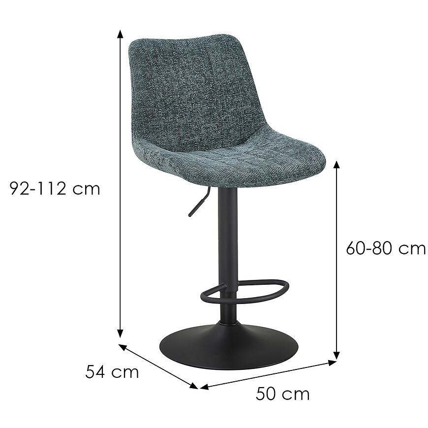 Stołek posiada tapicerowane siedzisko zapewniające wygodę podczas siedzenia. Maksymalna wysokość całkowita wynosi 112 cm, a minimalna 92 cm. Wysokość do siedziska można regulować od 60 do 80 cm, co pozwala dopasować hoker do różnych blatów kuchennych i wysp barowych.