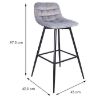 Hoker w kolorze szarym to doskonały wariant do salonu, jadalni, pokoju dziennego, gabinetu lub innego, dowolnego pomieszczenia. Głównymi zaletami krzesła są funkcjonalność, wygoda oraz ponadczasowy design. Nogi zostały wykonane z metalu w kolorze czarnym, a całość pokryta tkaniną.