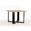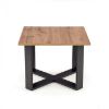 Stolik kawowy Alti z blatem w kolorze dąb wotan. Podstawę stanowi czarny stelaż, w którym cztery prostokątne nogi przeplatają się i łączą. Taki układ nie tylko świetnie się prezentuje, ale i zapewnia stabilność całej konstrukcji. Wysokiej jakości płyta meblowa, z której wykonano kwadratowy blat zapewnia dużą radość z użytkowania.