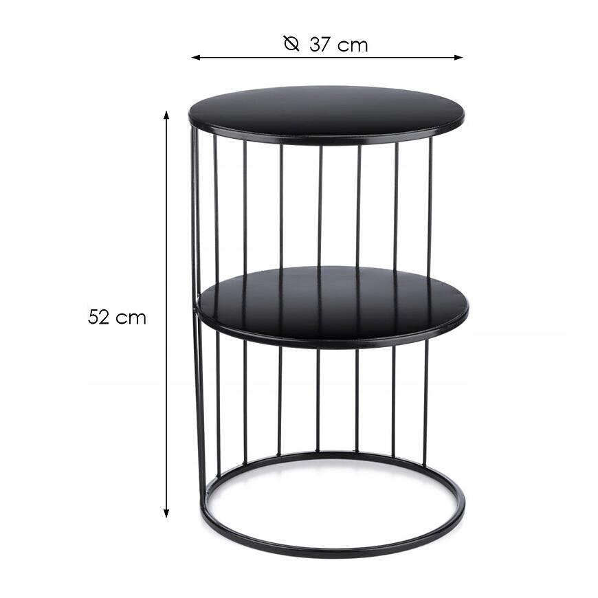 Stolik Bene w czarnym wykończeniu to okrągły stolik o wymiarach 37x37 cm i wysokości 52 cm, wykonany w całości z metalu z blatem łączącym mat i połysk. Waży 2,3 kg, nie jest rozkładany, wymaga samodzielnego montażu i doskonale wpisuje się w loftowy styl wnętrza, łącząc nowoczesną elegancję ze smukłą, lekką formą.