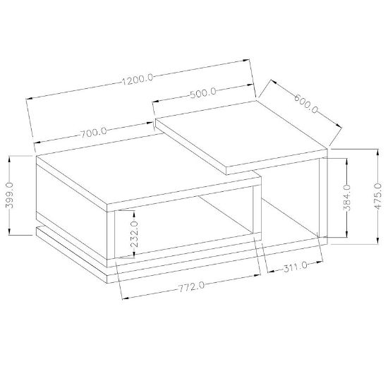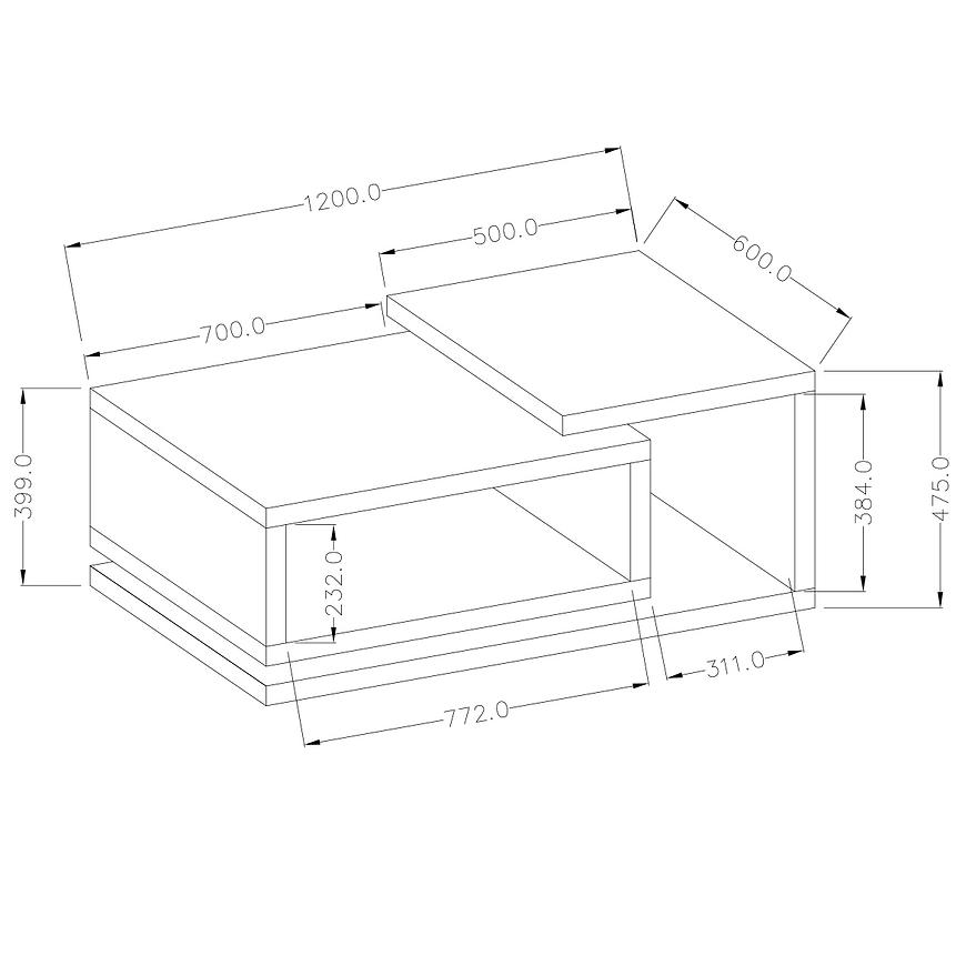 Wysokość stolika wynosi 40 cm, szerokość 60 cm, a długość 120 cm, co zapewnia wygodne użytkowanie w salonie lub pokoju dziennym. Stolik nie jest rozkładany, co zwiększa jego stabilność i trwałość.