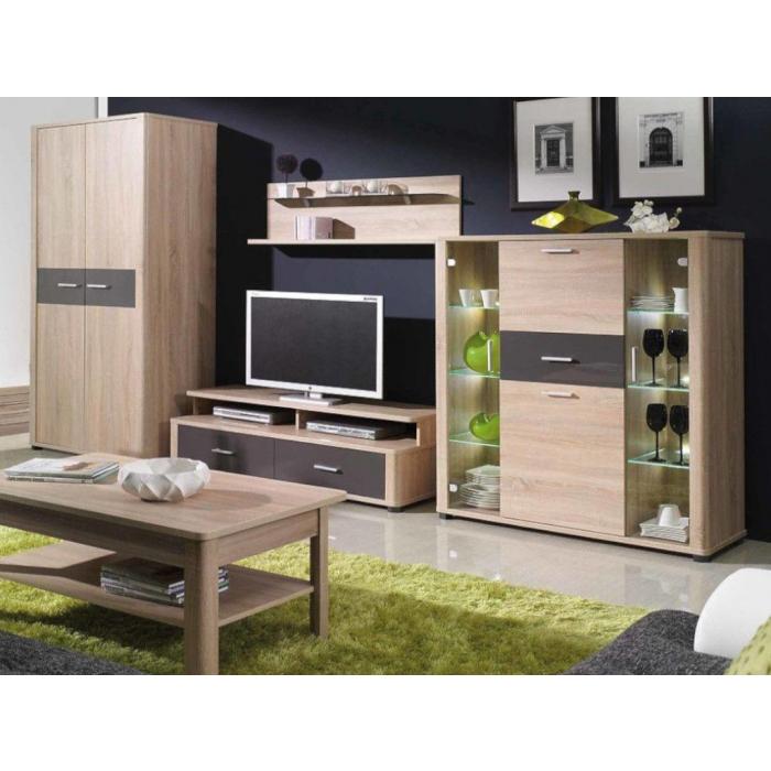 Stolik kawowy Fill t w kolorze dąb sonoma. Wykonany z płyty wiórowej laminowanej z matowym wykończeniem. Produkt wymaga złożenia.