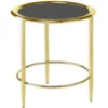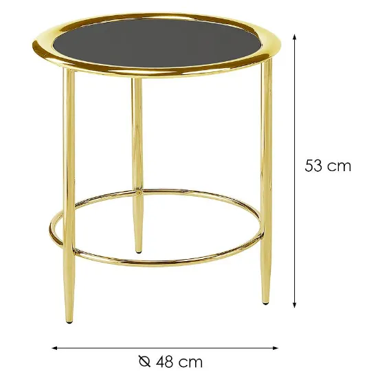 Stolik Gc7465 to połączenie eleganckiego stylu i funkcjonalności, które doskonale uzupełni każde nowoczesne wnętrze. Z jego okrągłym blatem z czarnego szkła i metalowym stelażem w wykończeniu mosiądz, stolik wprowadza do przestrzeni wyjątkowy akcent estetyczny, który zachwyca nie tylko wyglądem, ale również trwałością.