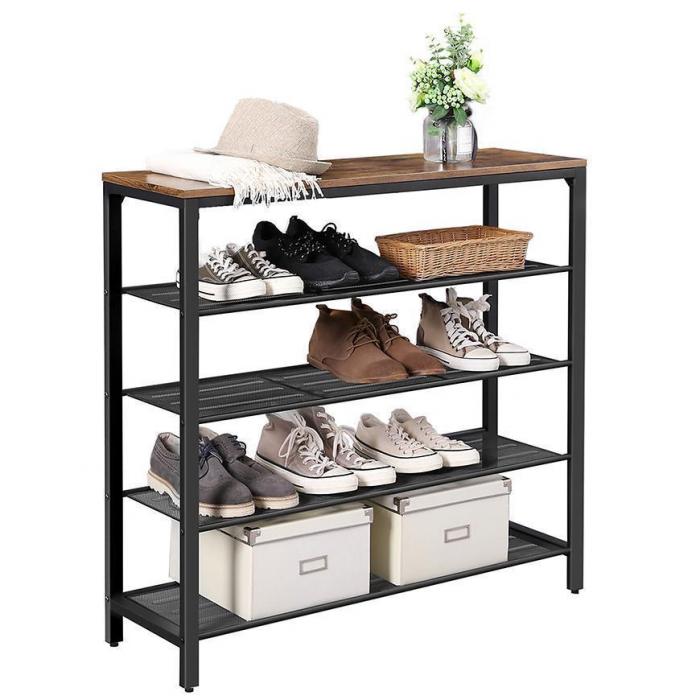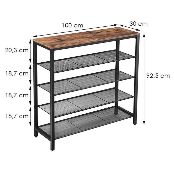Regał na buty Industrial to połączenie nowoczesności z elegancją. Regał został wykonany z metalu oraz blat z drewna. Sprawdzi się zarówno w mniejszych jak i większych pomieszczeniach. Może być również ozdobą biura bądź innych, dowolnych wnętrz.