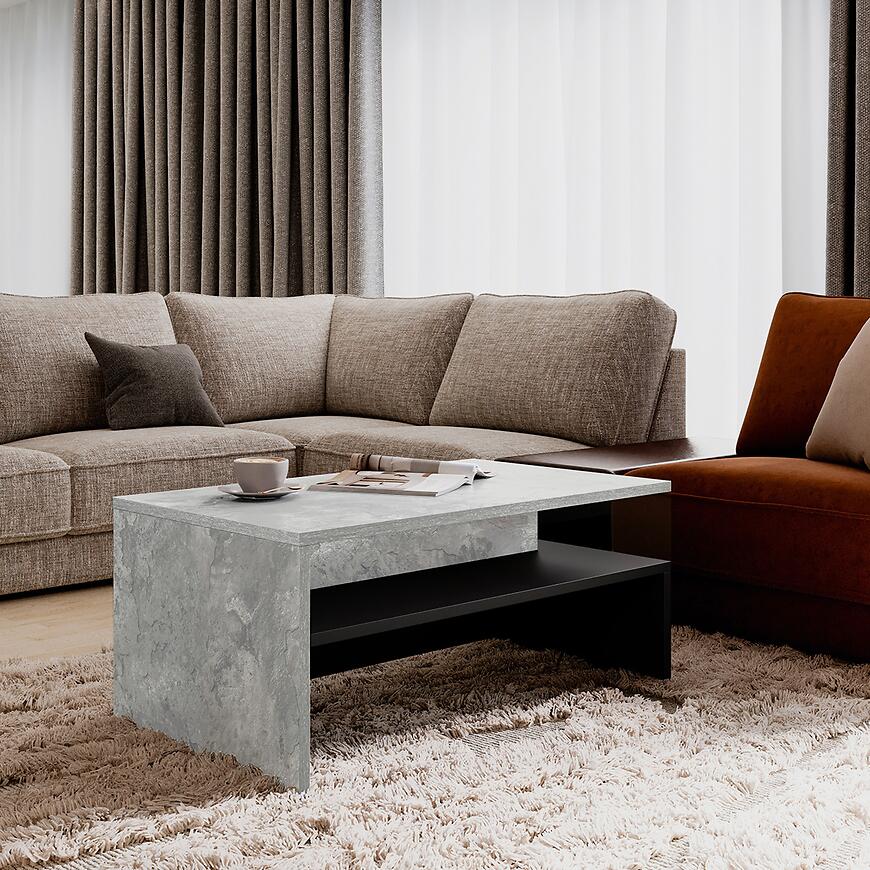 Stolik Kawowy Baros w kolorze jasny beton to propozycja dla osób ceniących nowoczesny design połączony z praktycznym wykorzystaniem przestrzeni. Wykonany z laminowanej płyty wiórowej, doskonale wpisuje się w aranżacje współczesnych wnętrz, wprowadzając elegancję i funkcjonalność do każdego salonu.
