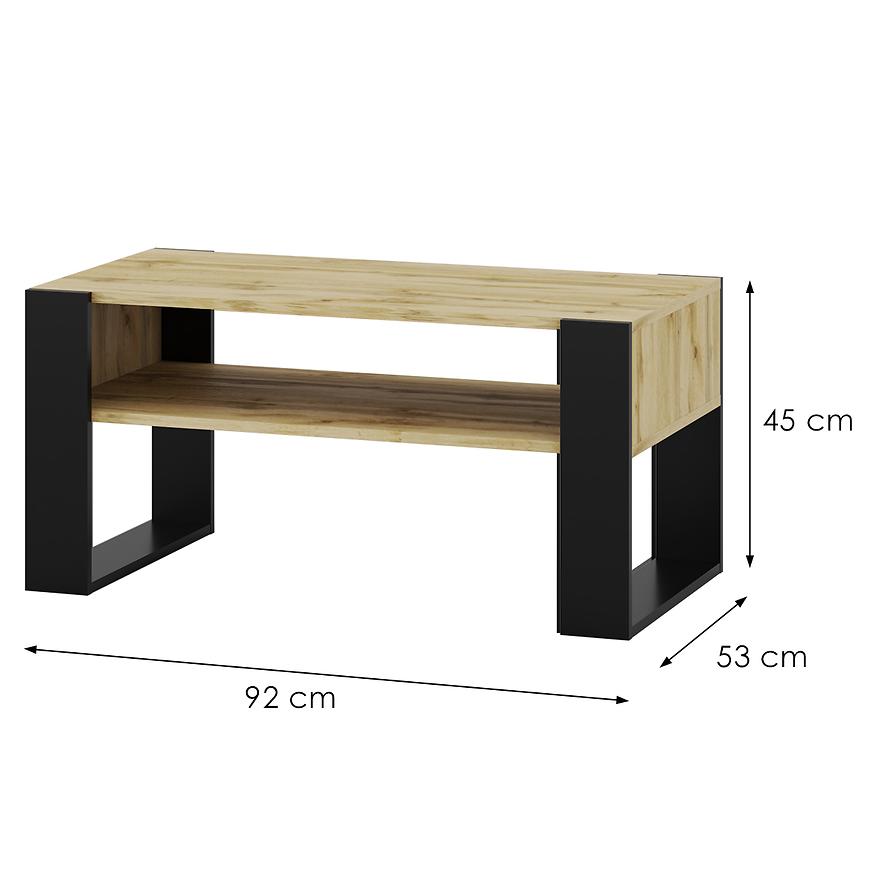 Blat o wymiarach 92 x 53 cm wykonany został z wytrzymałej płyty wiórowej laminowanej o matowym wykończeniu, co zapewnia trwałość, łatwość w czyszczeniu i odporność na codzienne użytkowanie. Stabilny metalowy stelaż w kolorze czarnym nadaje meblowi nowoczesnego charakteru i gwarantuje solidność konstrukcji. Dzięki wysokości 45 cm, stolik Caro doskonale sprawdzi się przy sofie lub narożniku, tworząc wygodną przestrzeń na kawę, książkę lub dekoracje.