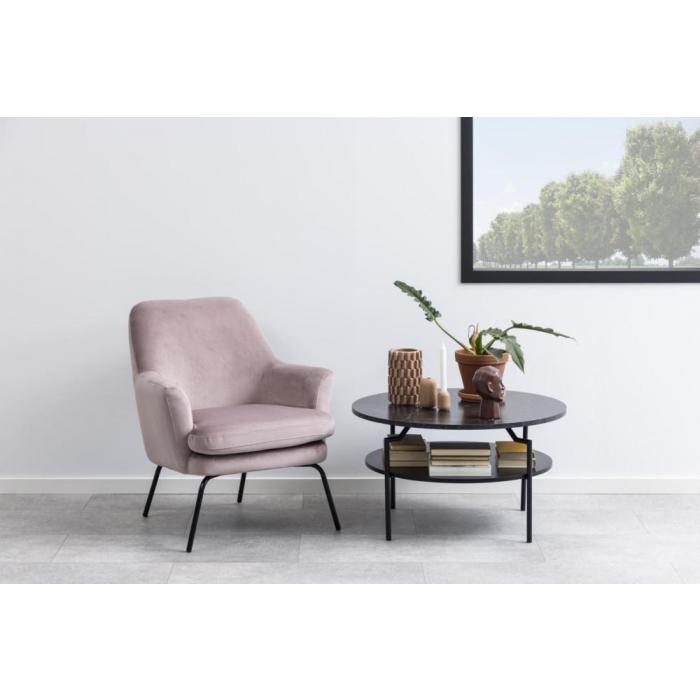 Elegancki stolik kawowy, który wpasuje się w niejedno wnętrze. Stolik posiada metalową konstrukcję, a blat wykonany został ze płyty MDF oraz melaminy o grubości 20mm. Dodatkowo stolik posiada półkę pod blatem, na której można położyć różne przedmioty. Idealny do pokoju dziennego lub salonu. Stolik wpasuje się w nowoczesne, loftowe wnętrza jak również we wnętrza klasyczne.