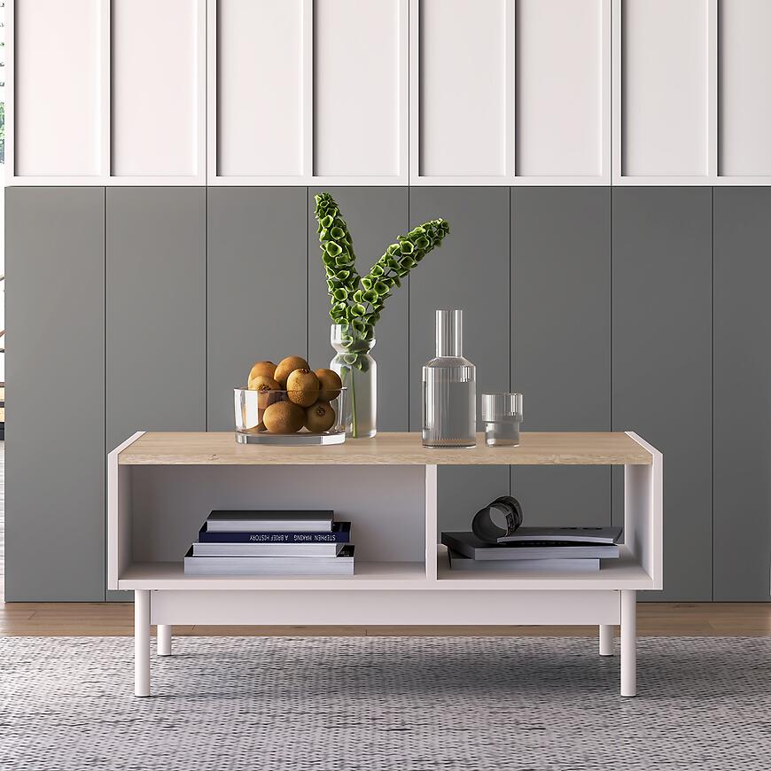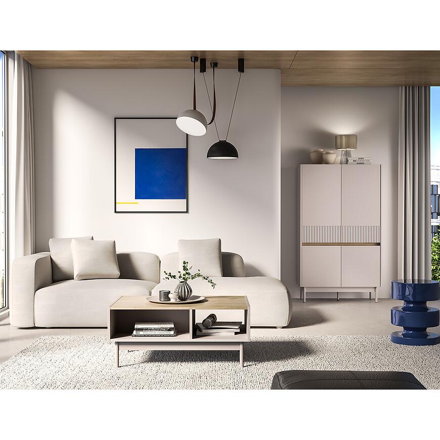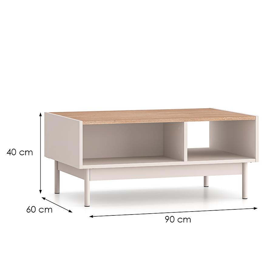 Stolik kawowy Dunea to funkcjonalny mebel, który stanie się centralnym punktem strefy wypoczynkowej. Jego beżowe wybarwienie w odcieniu cashmere w połączeniu z korpusem w dekorze dąb cremona nadaje mu elegancki, nowoczesny wygląd.