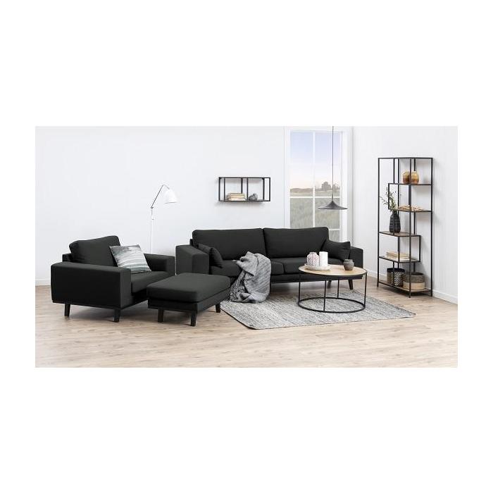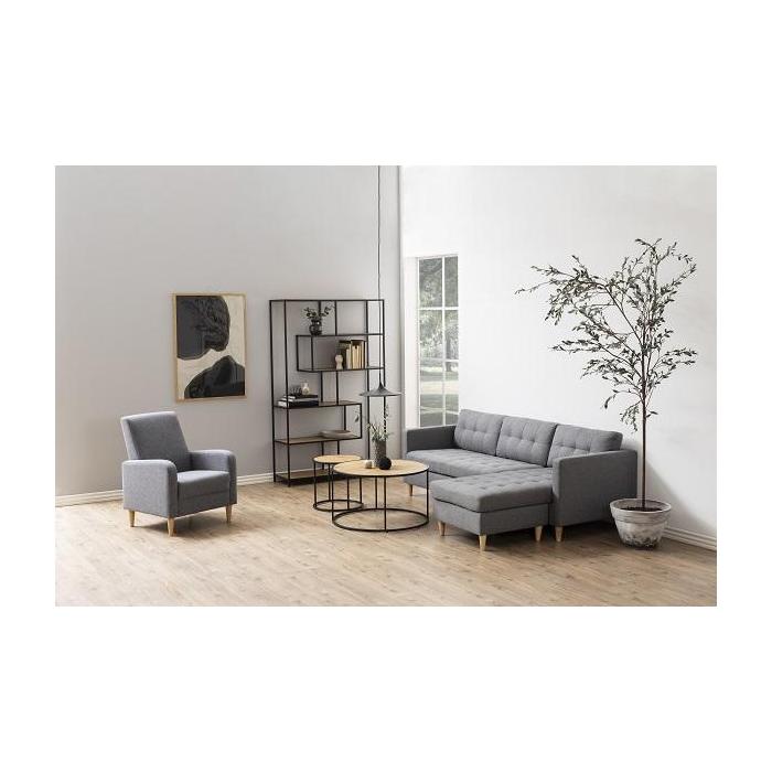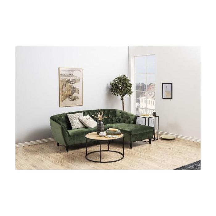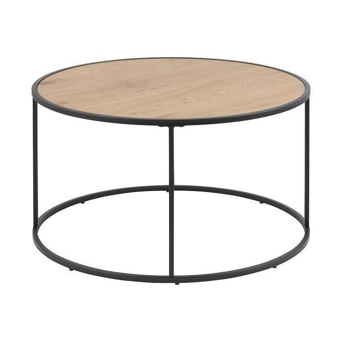 Stolik wpasuje się szczególnie w pomieszczenia urządzone w stylu glamour, klasycznym, skandynawskim, czy industrialnym. Stolik został wykonany z metalu lakierowanego proszkowo na kolor czarny oraz blat z płyty MDF z okleiną imitującą drewno dębowe. Czarne metalowe nogi, mają plastikowe nakładki na stopki i wysokość ich wynosi 45 cm. Idealne rozwiązanie na położenie filiżanki kawy , czy też ulubionej książki.