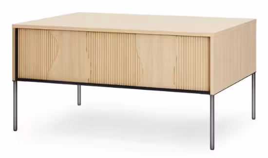 Flow FW-06 to stolik kawowy, który łączy estetyczny, nowoczesny wygląd z praktycznym zastosowaniem. Prostokątny blat, zamykana półka i ryflowane fronty sprawiają, że mebel pełni zarówno funkcję dekoracyjną, jak i użytkową. To stolik do salonu, który pozwala utrzymać porządek, eksponować wybrane akcesoria i wprowadzić subtelny akcent wizualny dzięki kontrastowi dębu vincenza bielonego i czarnego stelaża.