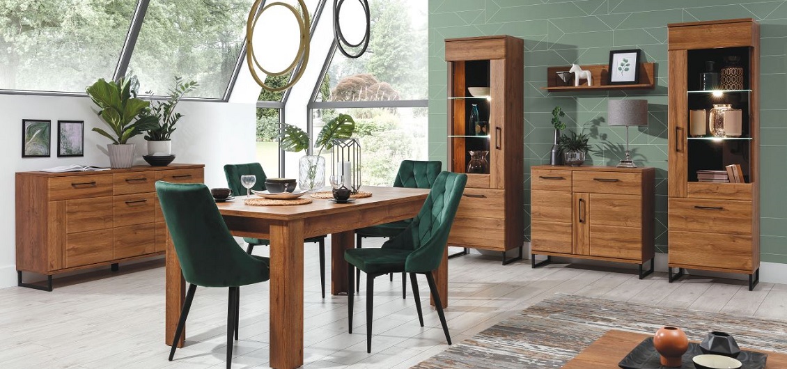 Kolekcja Ivo obejmuje szeroki wybór mebli, które pozwolą kompleksowo urządzić zarówno salon, jak i jadalnię: