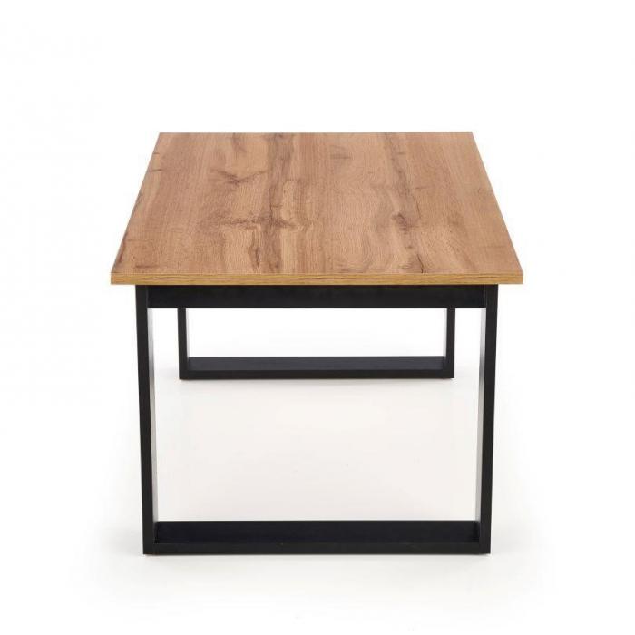 Stolik waży niewiele i jest stabilny dzięki solidnemu stelażowi. Mebel wymaga samodzielnego złożenia, jednak montaż jest prosty i szybki. Brak półki pod blatem sprawia, że mebel prezentuje się lekko i nowocześnie, a prostokątny kształt zapewnia praktyczną powierzchnię użytkową.