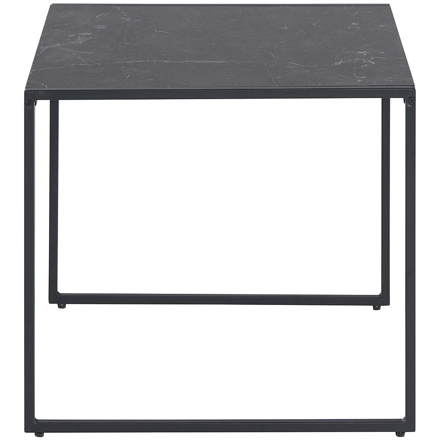 Jego kwadratowy blat o wymiarach 50x50 cm został wykonany z matowego szkła, co nadaje mu nowoczesnego charakteru i łatwość w utrzymaniu czystości. Stabilny, metalowy stelaż w czarnym wybarwieniu zapewnia trwałość i solidność. Dzięki wysokości 45 cm doskonale sprawdzi się jako stolik pomocniczy lub centralny element aranżacji. Idealny do wnętrz urządzonych w klasycznym stylu, podkreśli ich wyrafinowany charakter.