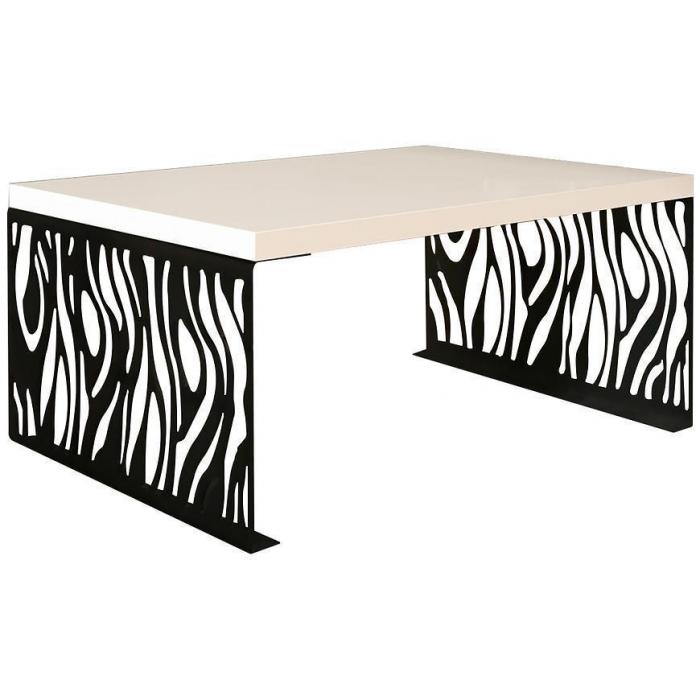 Wygląd stolika jest nowoczesny, a zarazem uniwersalny. Został wykonany z płyty wiórowej laminowanej, a stelaż z metalu.