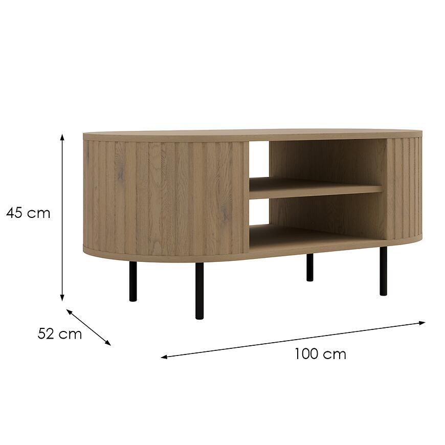 Stolik kawowy Ovalio 200 Dąb Cremona łączy elegancką formę z praktycznym zastosowaniem. Jego wymiary — wysokość 45 cm, szerokość 52 cm, długość blatu 100 cm — zapewniają wygodne miejsce do odłożenia napojów, książek czy dekoracji. Stolik nie posiada funkcji rozkładania, co sprawia, że konstrukcja jest stabilna, a użytkowanie proste i przewidywalne.