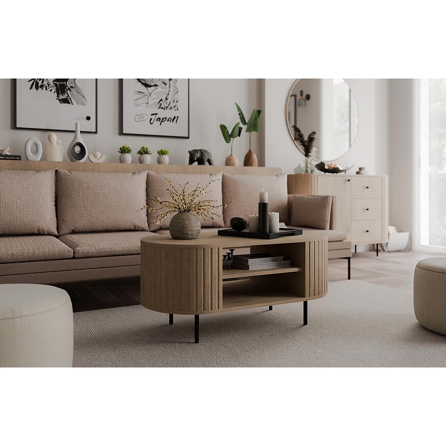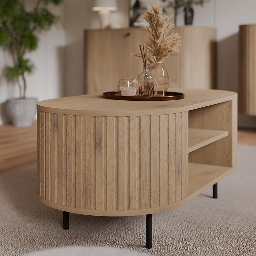 Stolik kawowy Ovalio 200 Dąb Cremona to propozycja dla osób, które szukają funkcjonalnego, eleganckiego stolika o nowoczesnym designie i subtelnym, naturalnym wybarwieniu drewna.