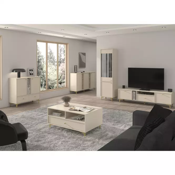 Meble z tej serii zostały zaprojektowane z myślą o funkcjonalności – każda bryła oferuje dużo przestrzeni do przechowywania, co pozwala na utrzymanie porządku w stylowy sposób. Kolekcja Tokyo 1 beż piaskowy świetnie sprawdzi się zarówno w salonie, sypialni, jak i gabinecie, tworząc spójną i harmonijną aranżację. Wykonane z trwałych materiałów, takich jak laminowane płyty wiórowe, są odporne na codzienne użytkowanie, co zapewnia ich długą żywotność.