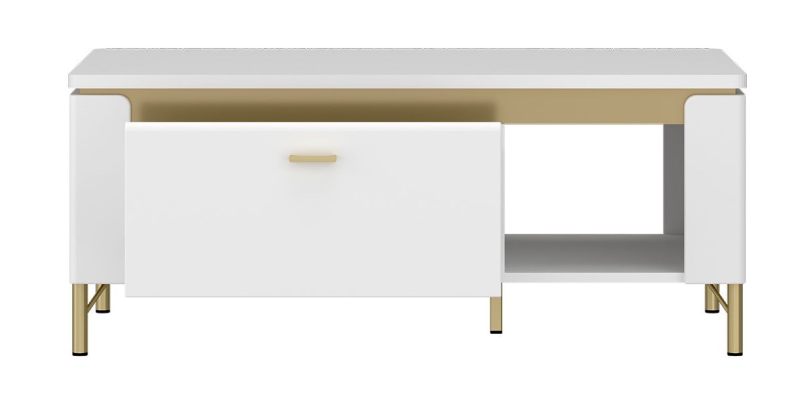 Kolekcja Lazio to połączenie elegancji, luksusu i nowoczesnych rozwiązań, stworzone z myślą o aranżacji pokoju dziennego lub jadalni. Zaprojektowana w stylu glamour, zachwyca przemyślanym zestawieniem matowej i błyszczącej bieli z delikatnymi akcentami złota, które nadają meblom wyjątkowego charakteru. To propozycja dla osób ceniących wyrafinowany design, wysoką jakość wykonania oraz praktyczne funkcje użytkowe.