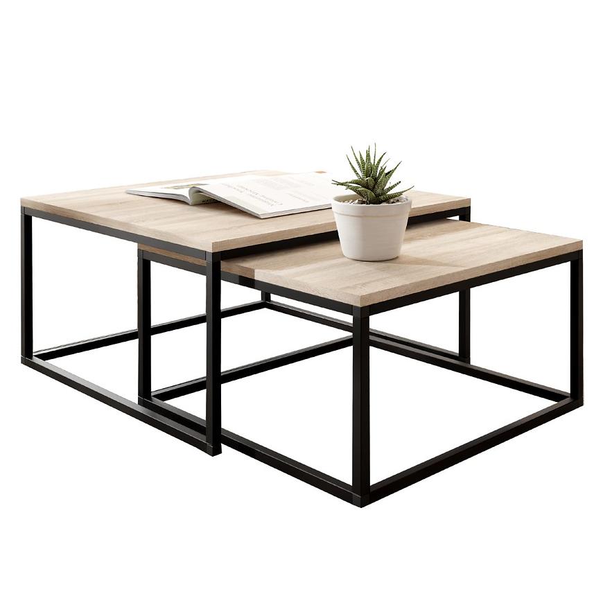 Stolik Loftiko Dąb Sonoma to propozycja idealna do salonu, gdzie liczy się zarówno styl, jak i funkcjonalność. Jego nowoczesny design oparty na połączeniu metalowej podstawy z blatem w dekorze jasnego drewna (dąb sonoma) wprowadza do wnętrza naturalne ciepło i lekkość, nie rezygnując z elegancji.
