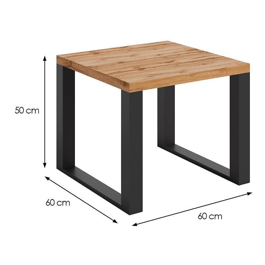 Wymiary stolika - 50 cm wysokości, 60 cm szerokości i 60 cm długości - sprawiają, że jest to idealne rozwiązanie do różnych pomieszczeń, dodając im stylu i funkcjonalności. Kwadratowy kształt blatu podkreśla nowoczesność mebla, jednocześnie umożliwiając swobodne umieszczenie go w dowolnym miejscu.