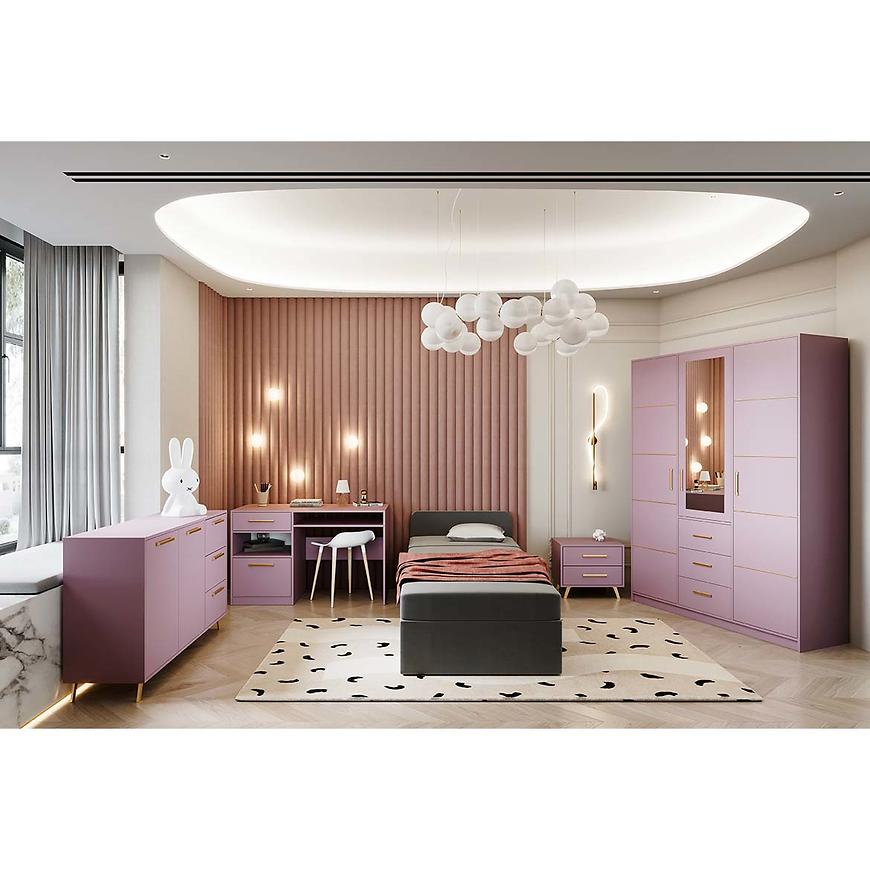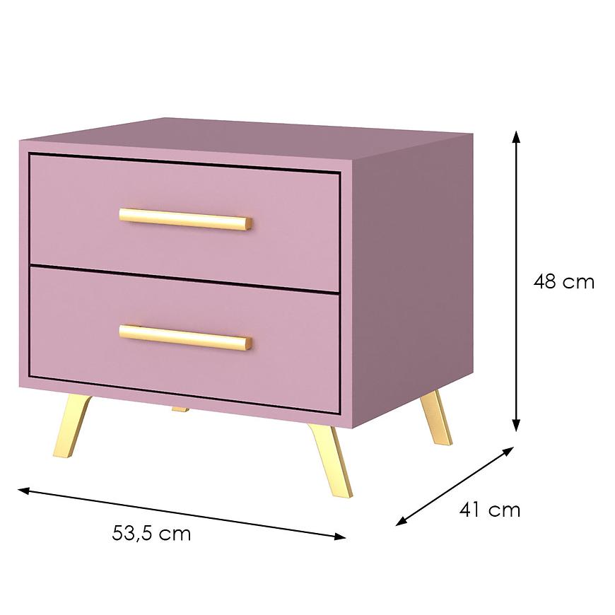 Wykonany z trwałej płyty wiórowej laminowanej w śliwkowym kolorze, prezentuje się nie tylko elegancko, ale także naturalnie. Matowe wykończenie nadaje mu subtelności, a dwie szuflady zapewniają praktyczne miejsce do przechowywania niezbędnych przedmiotów.