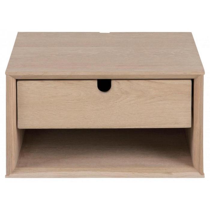 Stolik nocny Demi to przydatny mebel sypialniany. Oprócz funkcji mebla pełni także rolę dekoracyjną. Naturalna kolorystyka będzie pasowało do wielu aranżacji. Stolik posiada szufladę, do której można schować najpotrzebniejsze przedmioty. Jest podwieszany, nie zajmuje wiele miejsca dzięki czemu pasuje nawet do niedużej sypialni. Może również pełnić rolę niedużego stolika kawowego lub małego podręcznego mebelka. Mebel wykonany jest z płyty MDF i płyty wiórowej, powierzchnia blatu - fornir dębowy. Górną cześć mebla stanowi blat o grubości 17mm.