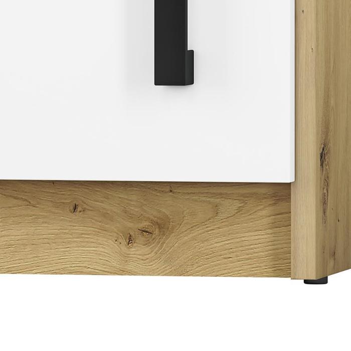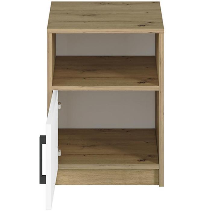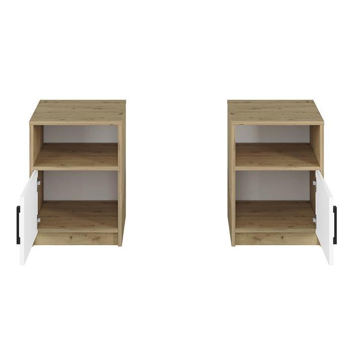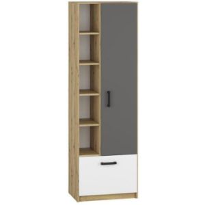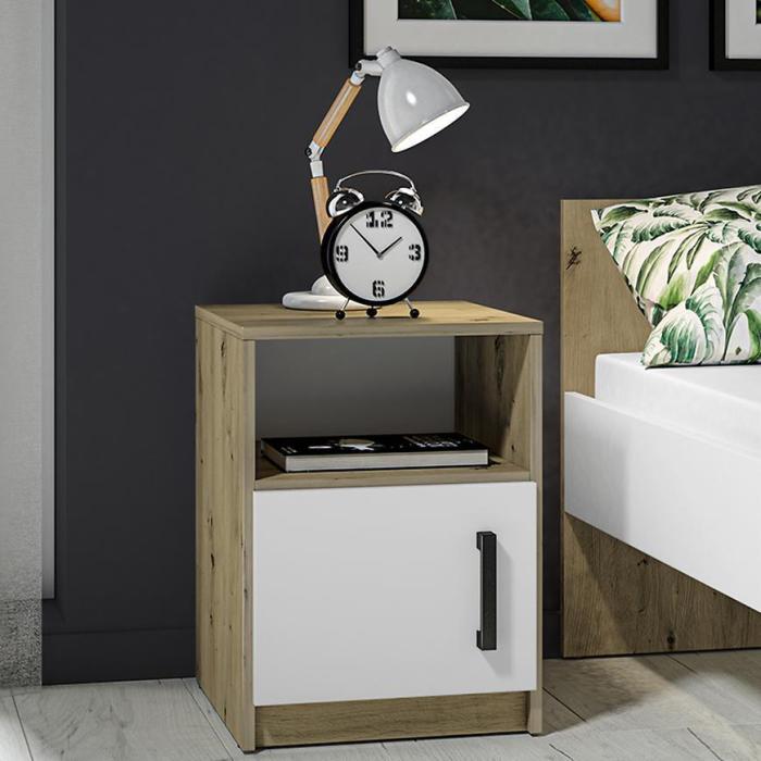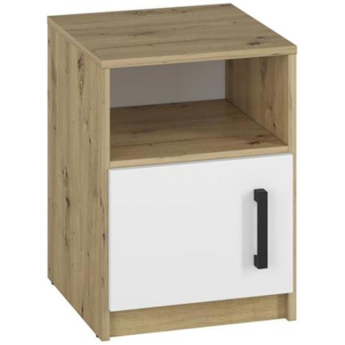 Stolik nocny Fini w kolorze dąb artisan/biały/antracyt to funkcjonalny i praktyczny mebel. Posiada stabilną konstrukcję oraz ciekawe wykończenie.