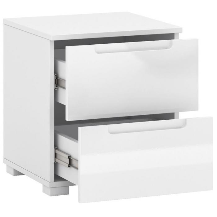 Stolik nocny Hill 2S biały połysk to połączenie stylu, funkcjonalności i trwałości. Z jednymi drzwiami i dwiema szufladami oferuje odpowiednią przestrzeń do przechowywania przy łóżku, a biały połysk frontów dodaje elegancji i nowoczesnego charakteru. Kompaktowe wymiary i wysokiej jakości materiały sprawiają, że stolik Hill 2S jest idealnym dodatkiem do każdej sypialni.