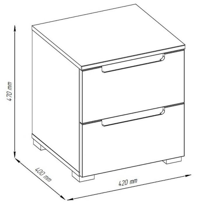 Dzięki wymiarom 42 cm szerokości, 40 cm głębokości i 47 cm wysokości, stolik nocny Hill 2S jest praktyczny i nie zajmuje dużo miejsca, a jednocześnie zapewnia odpowiednią przestrzeń użytkową na blacie i w szufladach. Prostokątny blat pozwala ustawić lampkę nocną, budzik lub dekoracje, utrzymując porządek przy łóżku.
